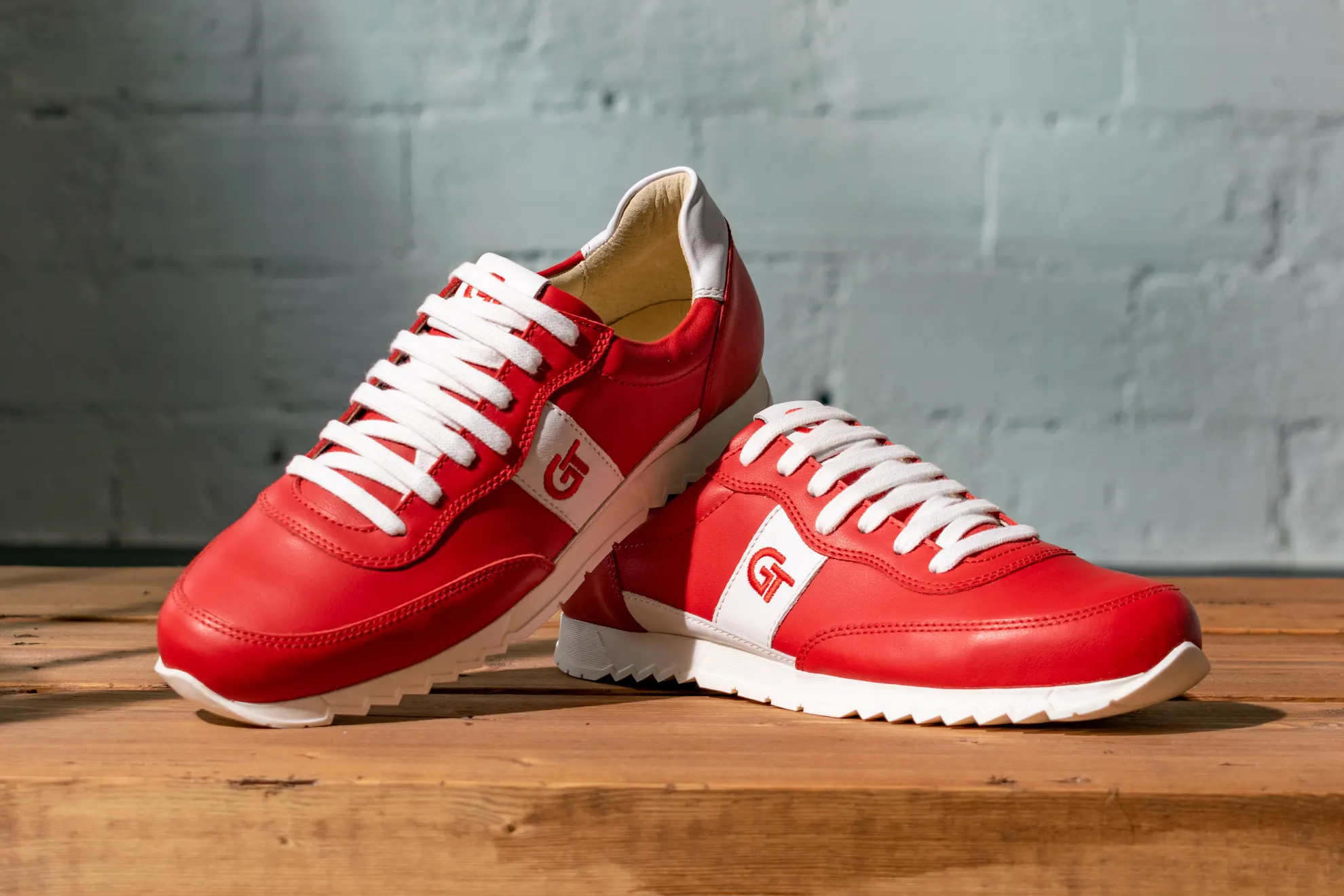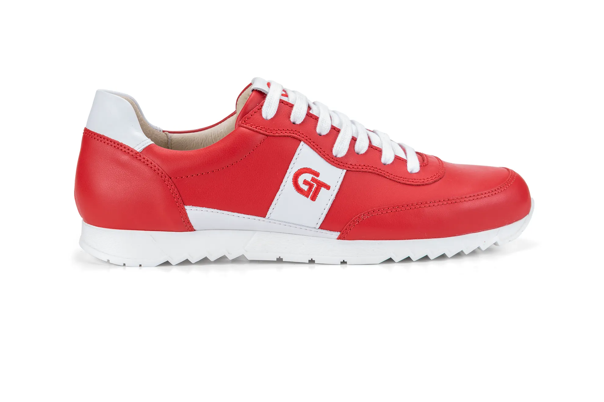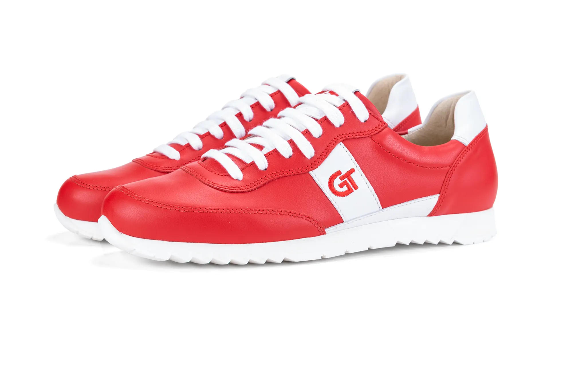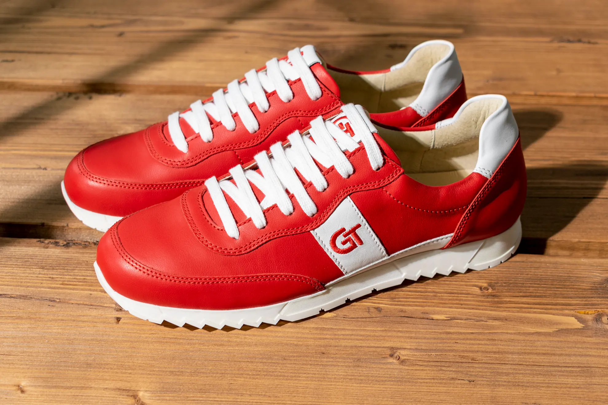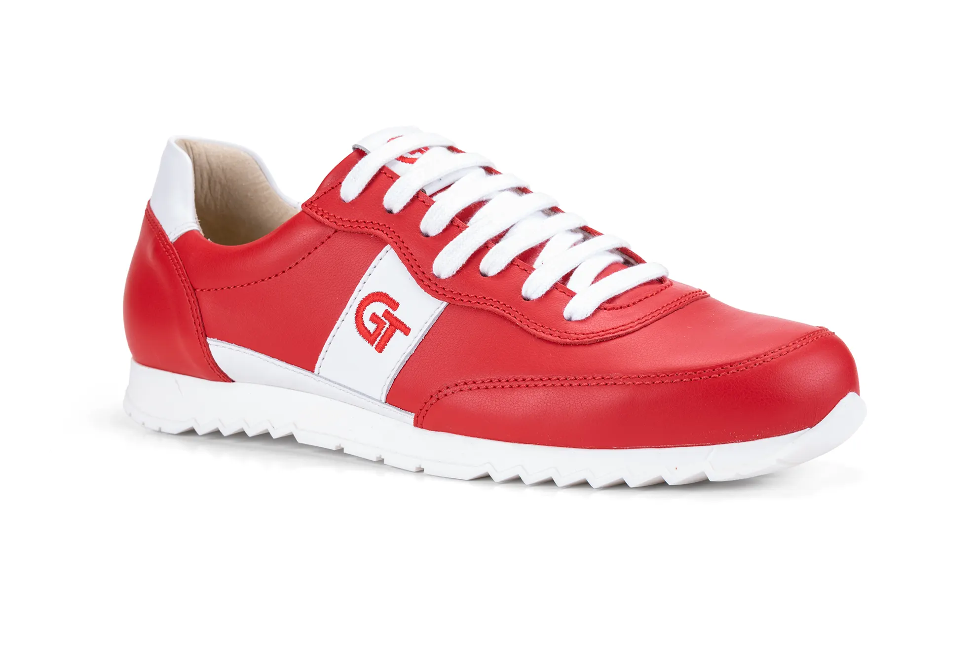 A legújabb G&T Aktív Piros – Fehér bőr sportcipő a vásárlóink által nagyon kedvelt piros és fehér nappa bőr felsőrésszel készült amelyhez a legújabb fehér TR talpat raktuk. A különleges megjelenést fokoztuk a gyönyörű, piros cérnával hímzett logóval. Az Aktív sportcipőnk ezzel a megjelenéssel bármelyik külföldi prémium lábbelivel felveszi a verseny!