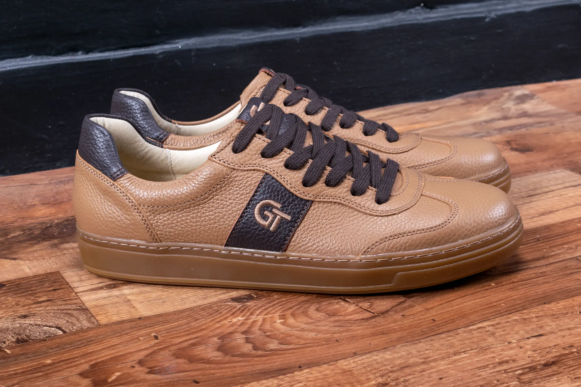 A G&T Street Dió cipő valódi bélésbőrrel bélelt, biztosítva a kényelmet és a tartósságot. A méz színű körbe varrt és ragasztott TR talp modern sneaker forma mellett a klasszikus eleganciát képviseli, míg a barna fűző harmonikusan illeszkedik az összképhez, kiemelve a férfias stílust.