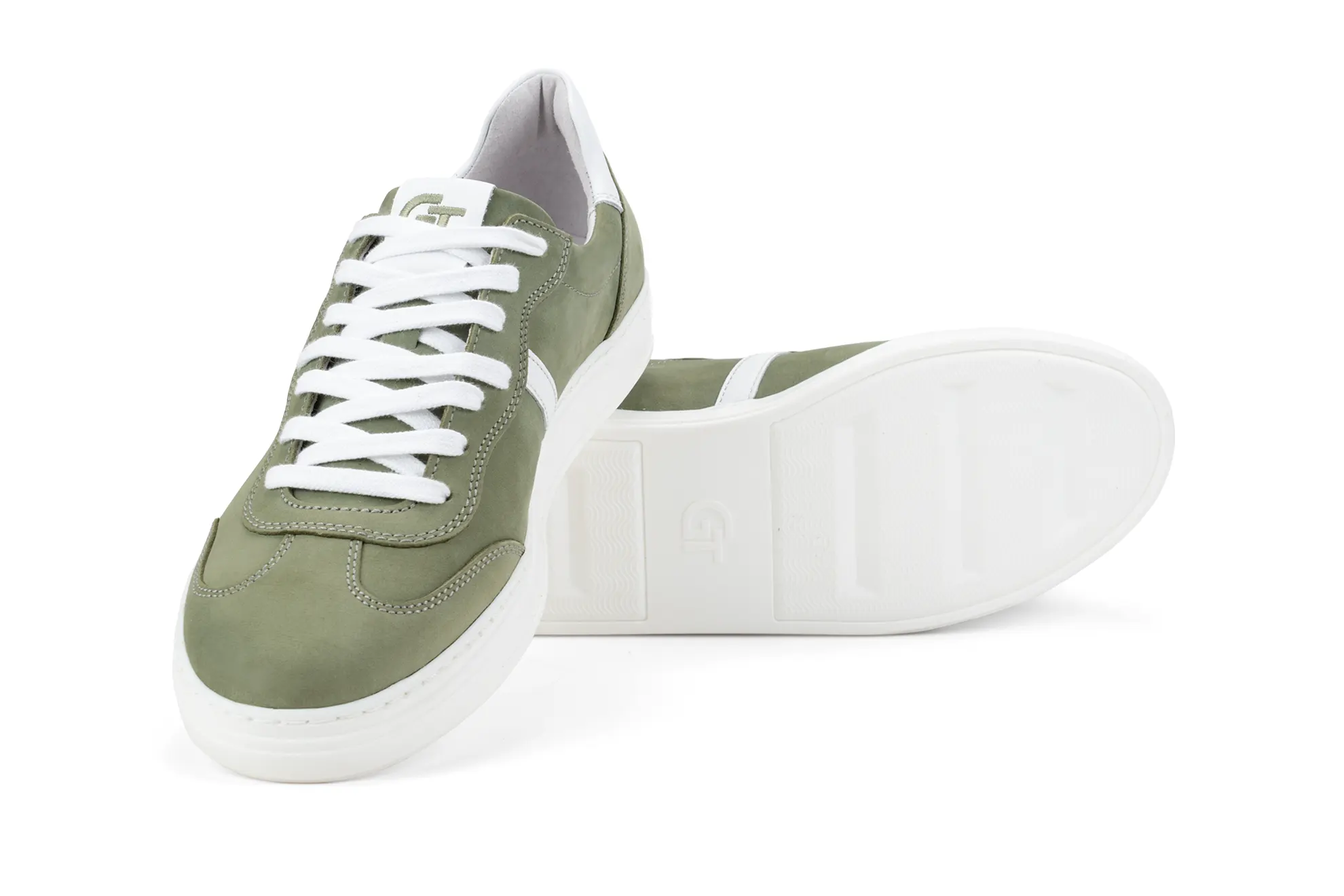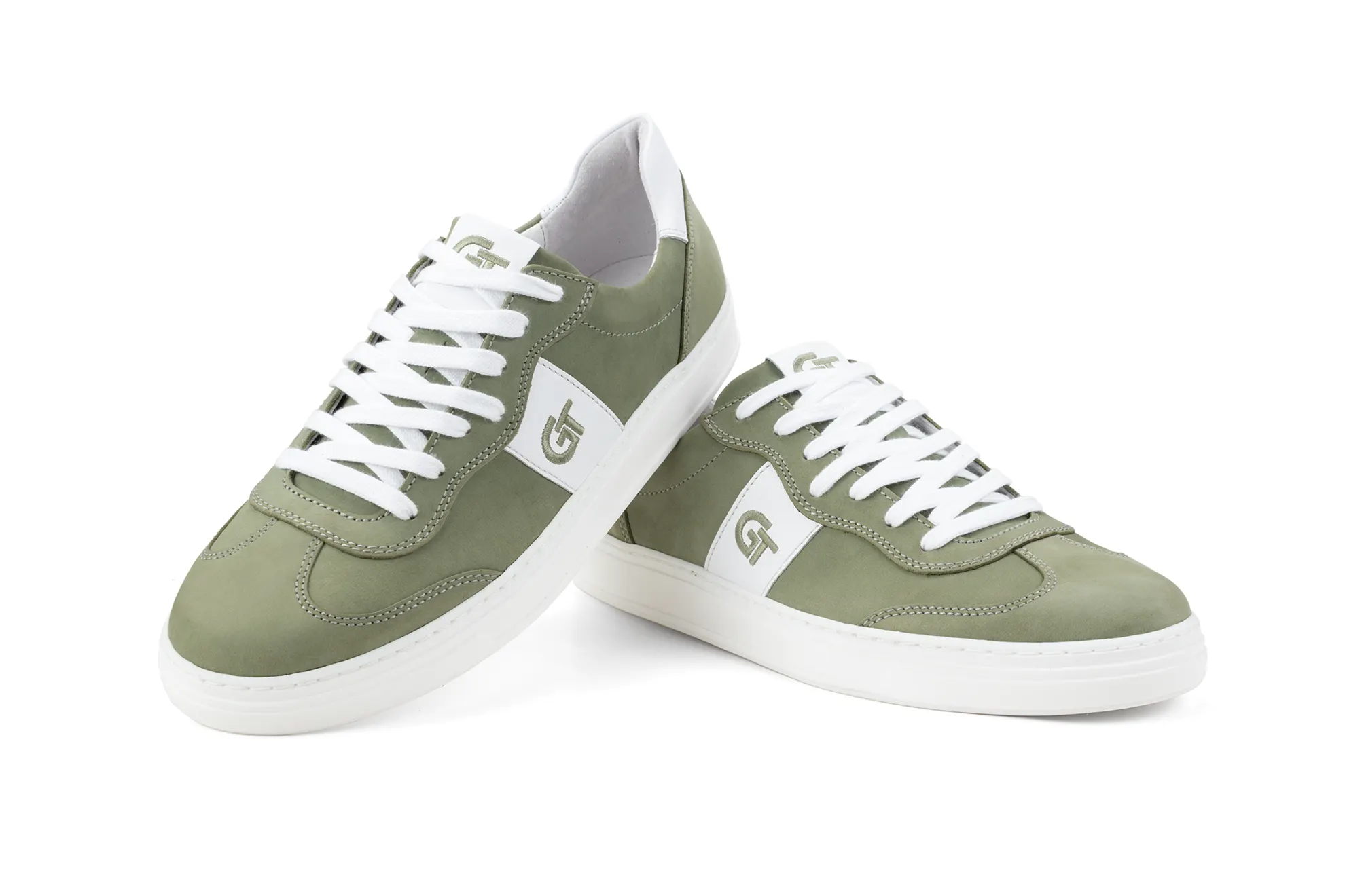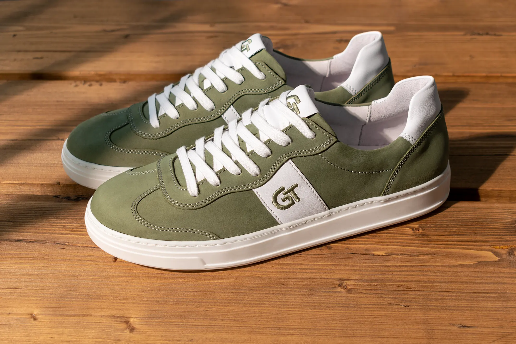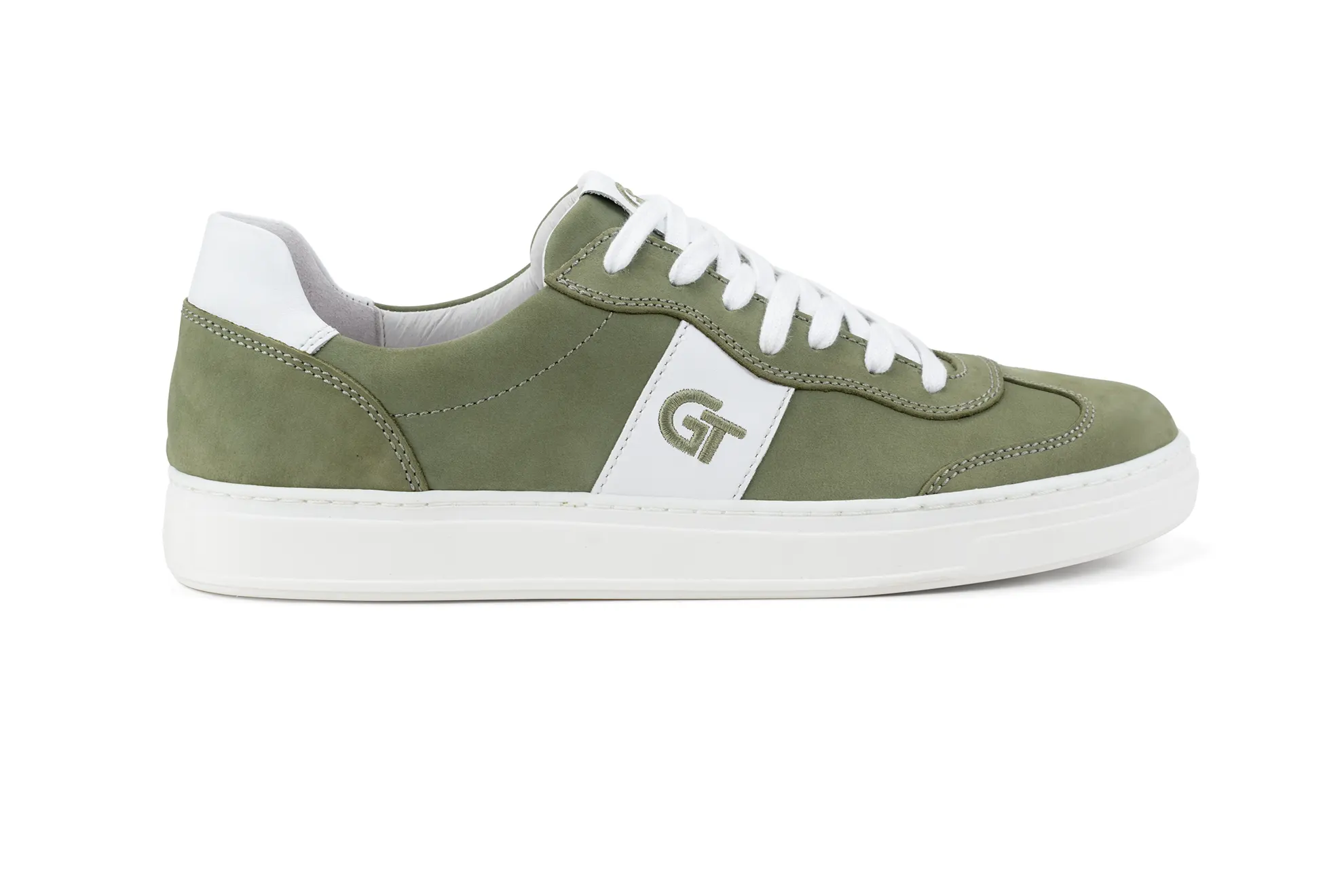 A G&T legújabb modelljével ez a korszak véget ért: a pisztáciazöld nubuk bőr friss, természetes hatást ad, a fehér olasz nappa bőr díszek pedig elegáns, sportos karaktert kölcsönöznek a cipőnek.